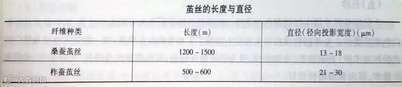 桑蚕和柞蚕的茧丝长度和直径的变化范围(内含两个丝素纤维)见下表: