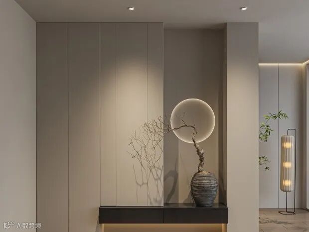 重点照明装饰物件,并洗墙空间,利用明暗划分空间的层次感。