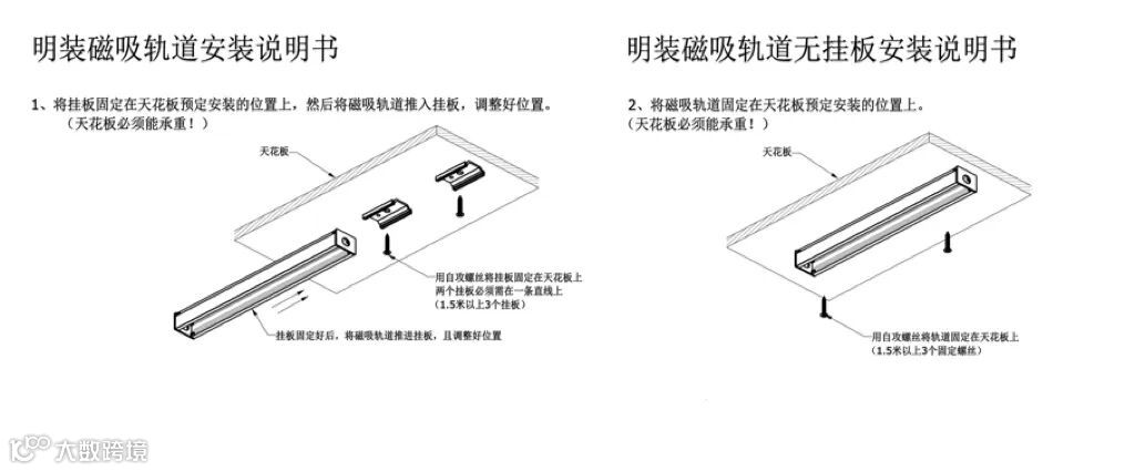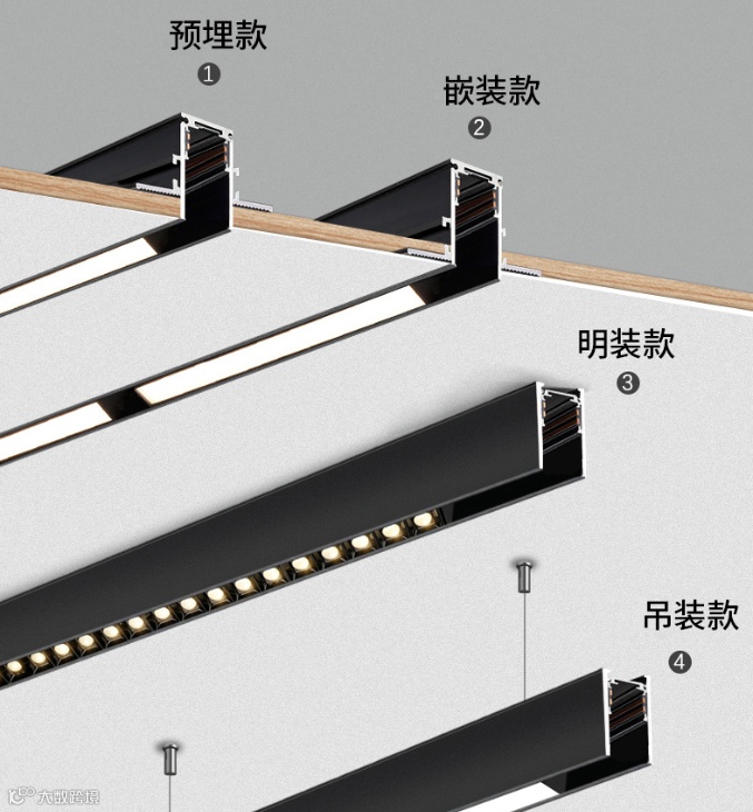 明装轨道,使用螺丝或卡扣等方式固定在原顶面的轨道上,有搭配专门安装配件应对各种安装坏境的局限,无需吊顶,也可以实现安装磁吸灯。