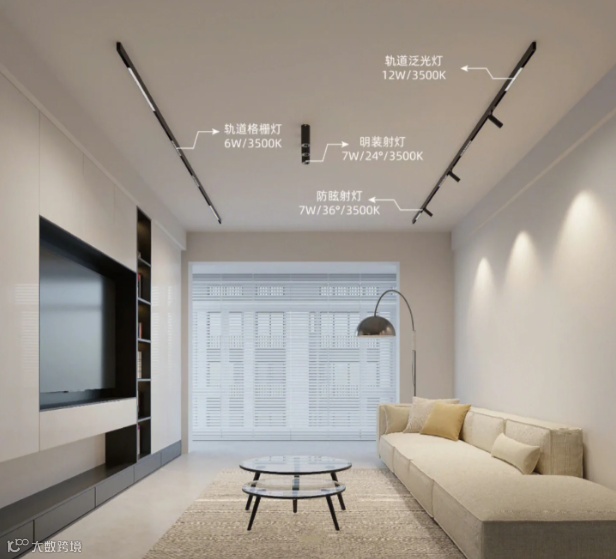 风格和安装位置灵活多变,根据空间大小来选择安装方式和样式甚至混搭都可以,常见的磁吸轨道布局:平行、矩型、L型、双L型、U型、T型等,可满足基础照明、重点照明、洗墙照明想要DIY参与感方式的用光需求,具体情况可根据房屋的结构再进行设计调整。