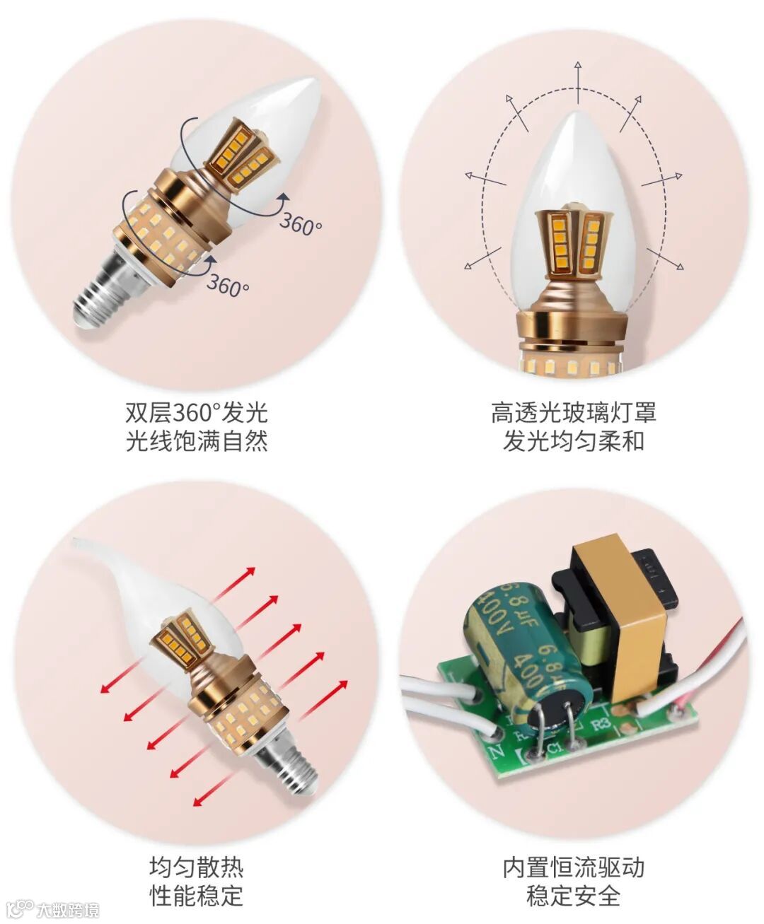 然而,复古风和旧物风却又经久不衰,这说明了大家在与时俱进马不停蹄的同时也希望可以通过旧物这道时光之门去寻找那些被时间淹没的美好。所以即使新事物不断涌现,但旧的事物未必就要彻底消失。新科技和旧元素的融合反而会有更加美妙的效果,比如开尔精品360系列的蜡烛泡和拉尾泡,在最前沿的半导体照明技术中融入复古的造型设计,精致的华灯之下让人仿佛置身于那个充满仪式感的年代。