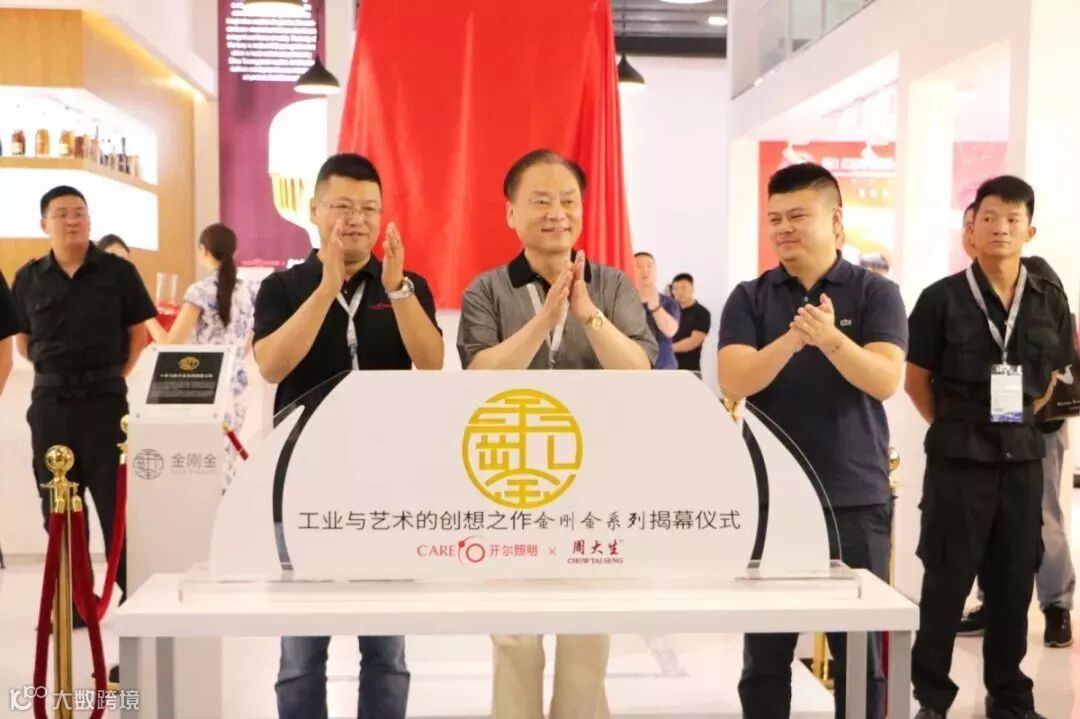 6月9日上午,开尔携手国内知名珠宝品牌周大生,于现场联名首发神秘新品“金刚金”,浙江省照明电器协会理事长凌应明、开尔照明董事长洪旭光、周大生集团互联天下总经理郭晋等嘉宾出席揭幕仪式。