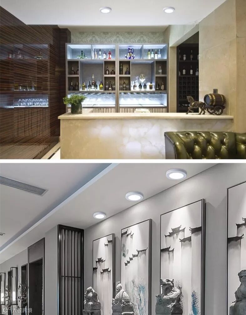 超薄的灯体使得它可以安装于狭小空间或高度较低的天花板上,几乎不占据天花板高度,使得流畅视线得到很好的延续,增加了空间纵深感,并营造出柔和气氛。