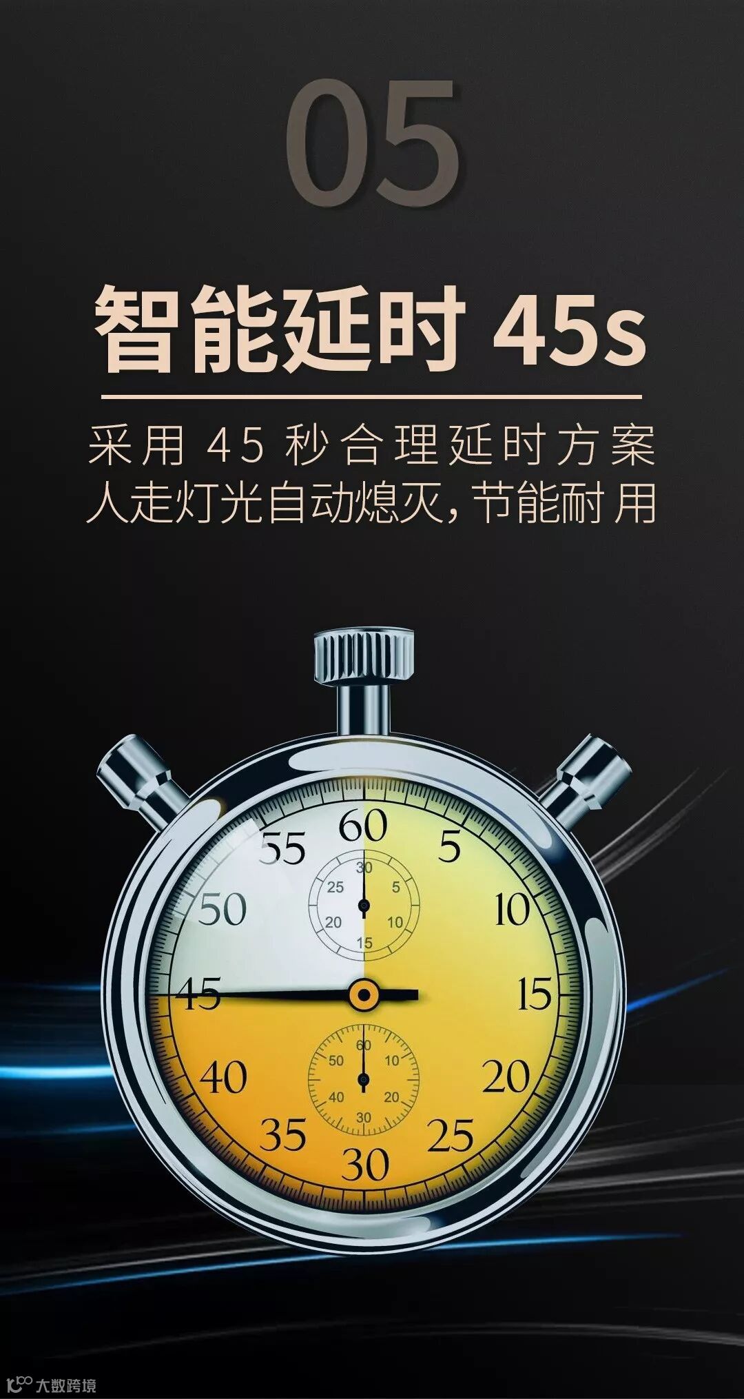 必须同时满足两个条件哦,无光线环境,再加50分贝以上声音,才会自动亮起;无声音后延时45秒自动关灯,无需费心。