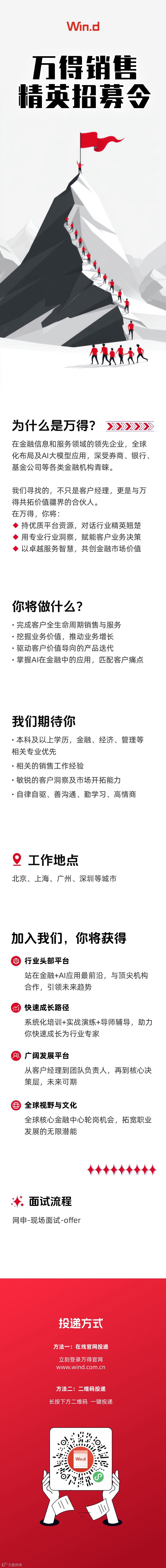 万得信息技术股份有限公司(下称:Wind)是中国大陆领先的金融数据、信息和软件服务企业,总部位于上海陆家嘴金融中心。精于数据分享数据价值,Wind的愿景是做一家让数据垂手可得的全球企业。我们欢迎志同道合的你加入。数据就是未来,加入就是现在!