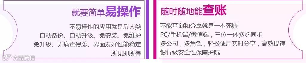 依托用友集团银行级数据安全,采用新的互联网+技术,国家可信云认证,产品免安装免维护免升级免备份,移动应用,PC,微信,手机,随需而用。