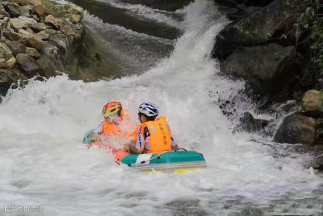 第二天我们来到了木鱼山漂流,这是一个特别刺激的活动,两个人一个游艇,有时会遇到一些情况导致游艇停滞不前或者在河道水流较深时出现漩涡的情况,这时候就是要看队友的啦,你拉我一把我拉你一把,大家一起平安度过这个‘小困难’,团结协作力量大,没有什么问题是解决不了的。