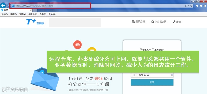 畅捷通T+普及版,天然的互联网应用模式,让企业实现异地远程好管理。