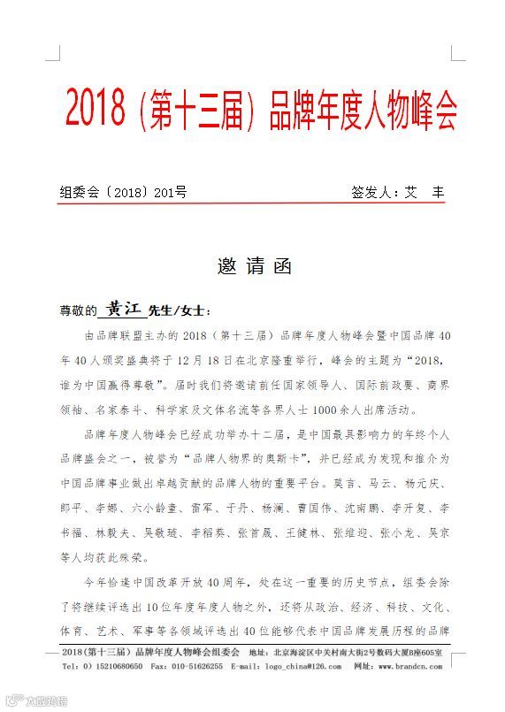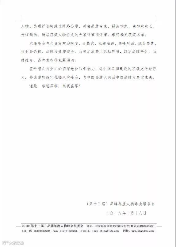 2018(第十三届)品牌年度人物峰会将于12月18日举行,届时将隆重发布2018中国十大品牌年度人物,并举行颁奖仪式,还将对改革开放四十年以来为中国品牌建设与发展做出突出贡献的四十人进行榜单发布及表彰。