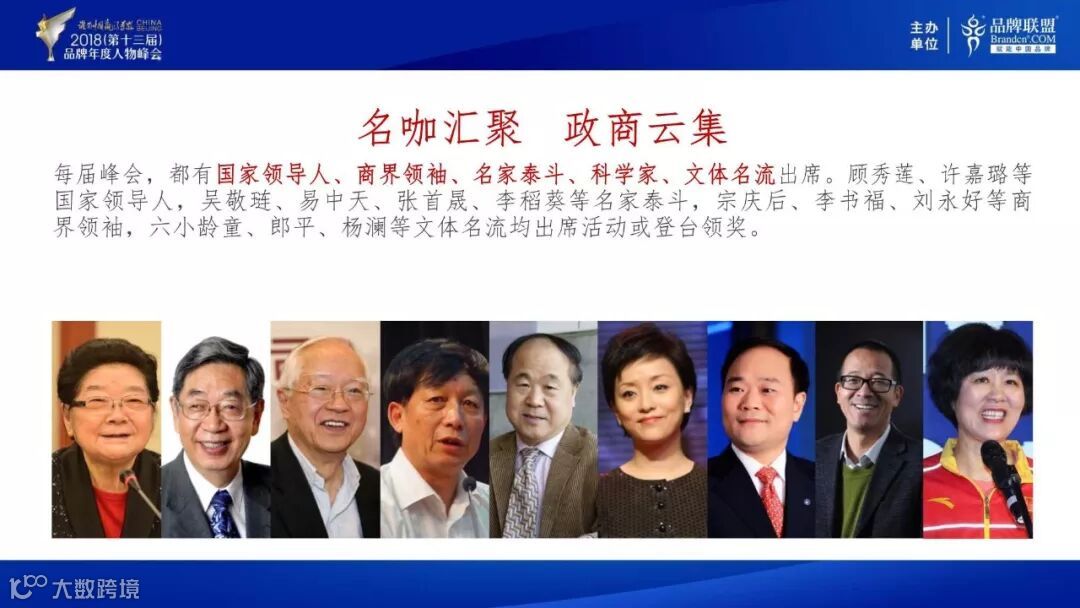 多年来,峰会主办方品牌联盟始终坚持围绕“品牌理念”、“年度推崇”、“人物标识”、“卓越贡献”四大核心元素,表彰“以中华情怀描绘品牌梦想蓝图,以民族智慧开创品牌全球格局”的年度品牌人物,该奖项也是为推动个人品牌标准的建立而打造年度品牌人物的重要奖项。