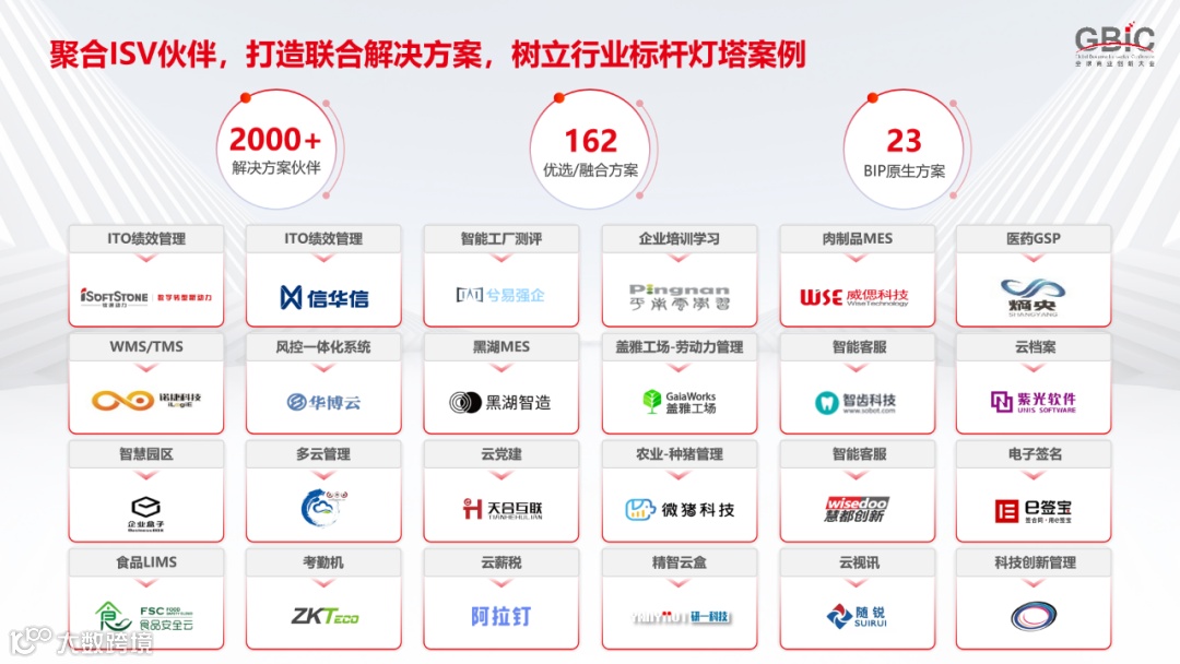 随着ISV生态的不断发展,与伙伴的联合共创过程中也涌现出了众多优秀成果。本次论坛中,30款2022年ISV全新联合解决方案重磅发布,包括16款用友BIP原生解决方案,14款用友BIP联创解决方案,涵盖医疗、智能制造、智慧园区、营销服务、工业互联网及新零售、大数据工具及服务、供应链等众多领域。未来,用友将持续发力,打造领先的生态融合一体化共创服务平台。