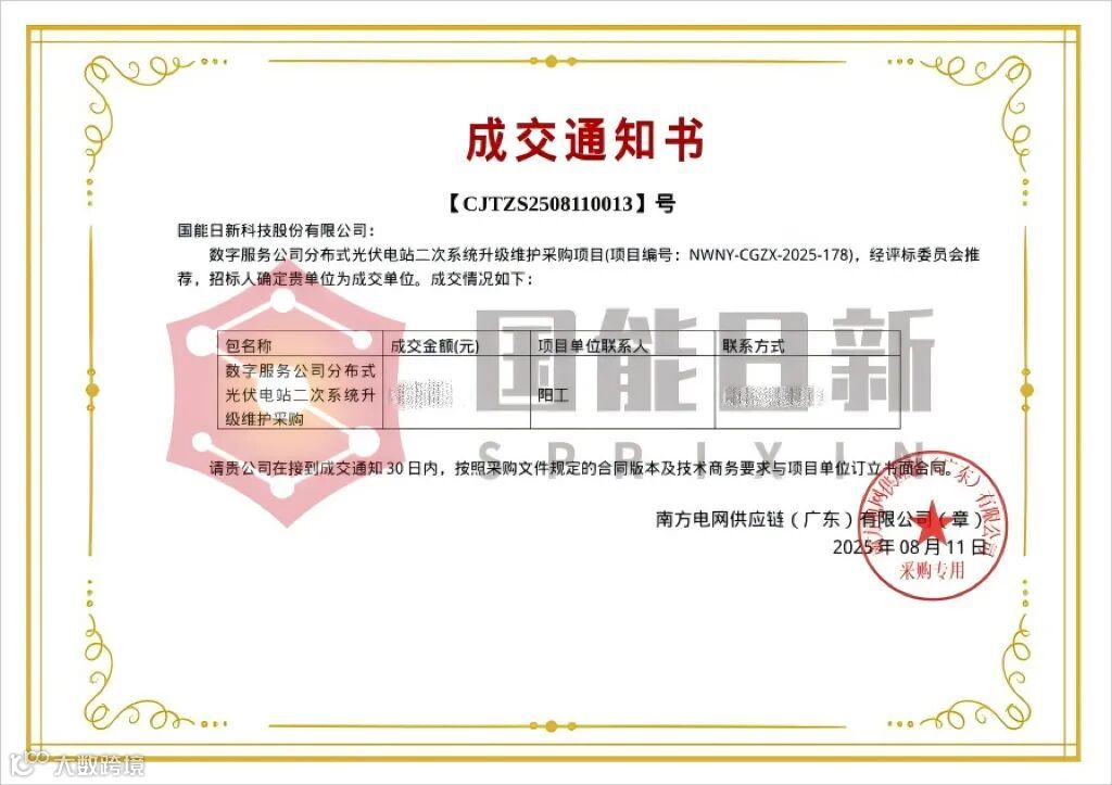 国能日新成功中标南网综能分布式光伏电站二次系统升级维护物资采购项目。此次中标,标志着国能日新成为首家为南网综能公司提供II型边缘网关技术支持的企业,为南网综能分布式光伏运行管理规范性与安全性的提升具有重要意义。