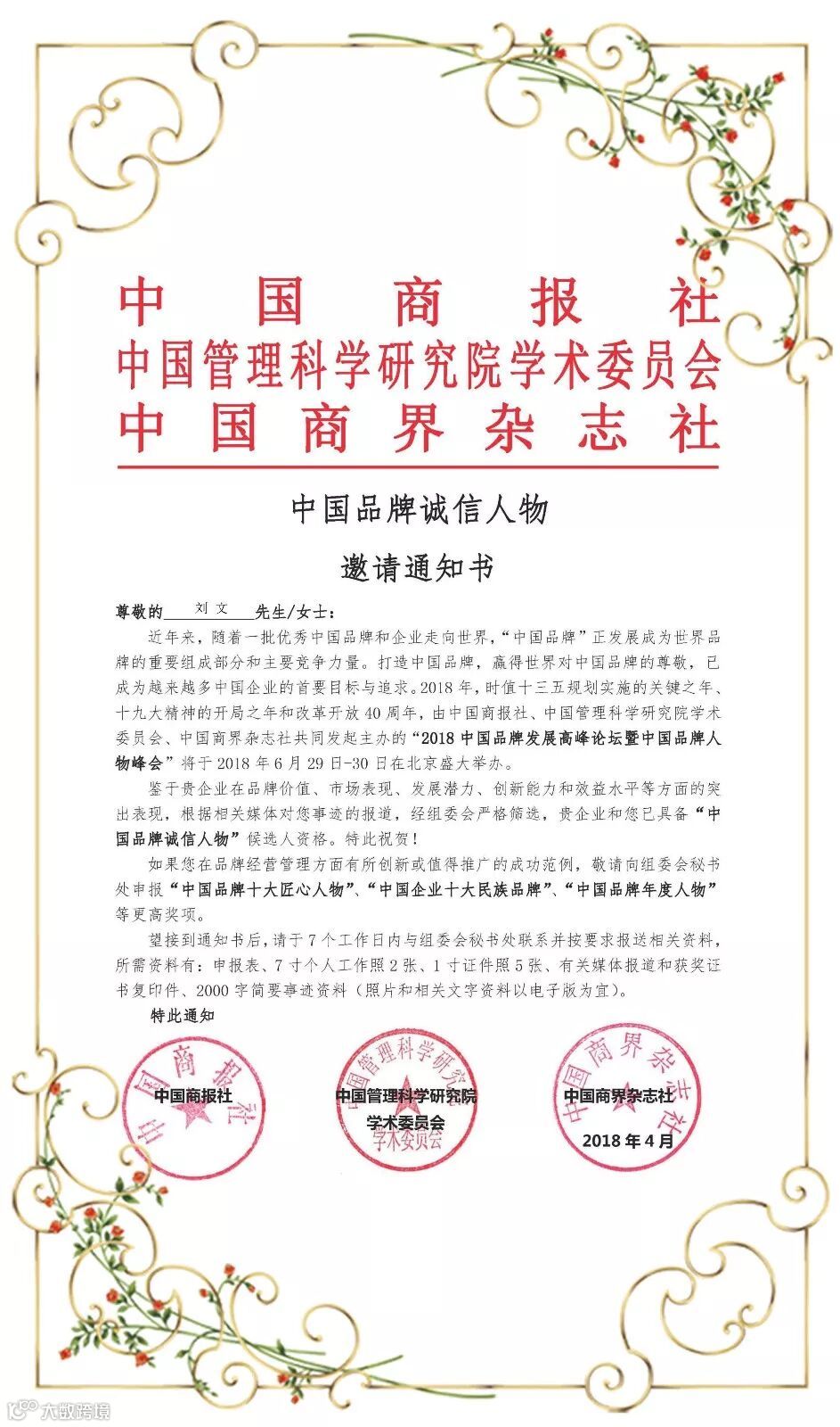 近年来,随着一批优秀中国品牌和企业走向世界,“中国品牌”正发展成为世界品牌的重要组成部分和主要竞争力量。打造中国品牌,赢得世界对中国品牌的尊敬,已成为越来越多中国企业的首要目标与追求。2018年,时值十三五规划实施的关键之年、会议精神的开局之年和改革开放40周年,由中国商报社、中国管理科学研究院学术委员会、中国商界杂志社共同发起主办的“2018中国品牌发展高峰论坛暨中国品牌人物峰会”将于2018年6月29日-30日在北京盛大举办。届时,国内政要、专家学者、创新先锋、企业领袖、媒体记者等500多人出席盛会。