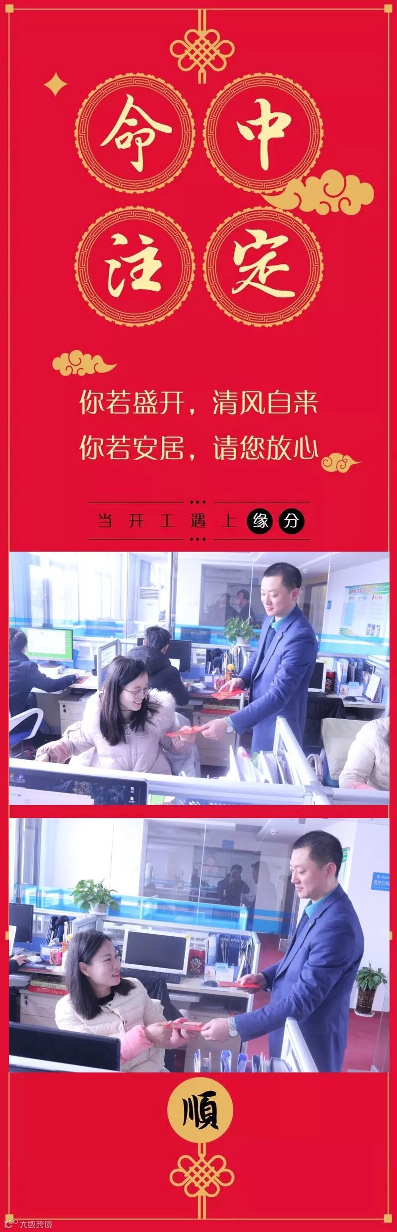 新年上班的第一天,首先祝福全国各地圣美家人新春愉快,工作的事业伙伴开工大吉。在圣美南京总部,创客营销部经理黄江先生代表圣美给第一天工作的小伙伴们准备了一些小小的惊喜~新年行大运,红包走起来!