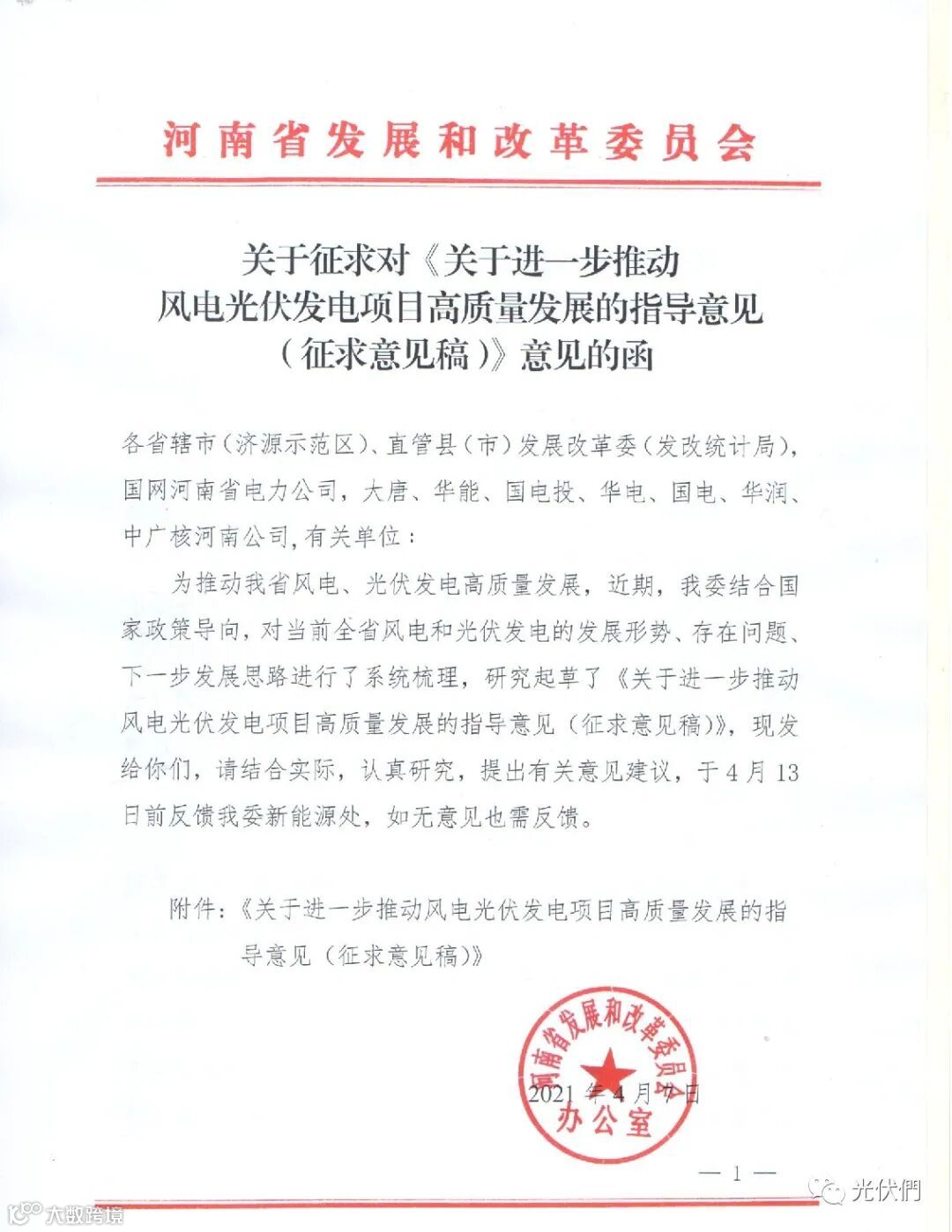 近日,河南省发改委发布关于征求对《关于进一步推动风电光伏项目高质量发展的指导意见(征求意见稿)》意见的函。根据文件,河南省争取2025年全省可再生能源装机达到5000万千瓦以上,力争风电光伏发电新增2000万千瓦左右,奋力向构建以新能源为主体的新型电力系统目标迈进。