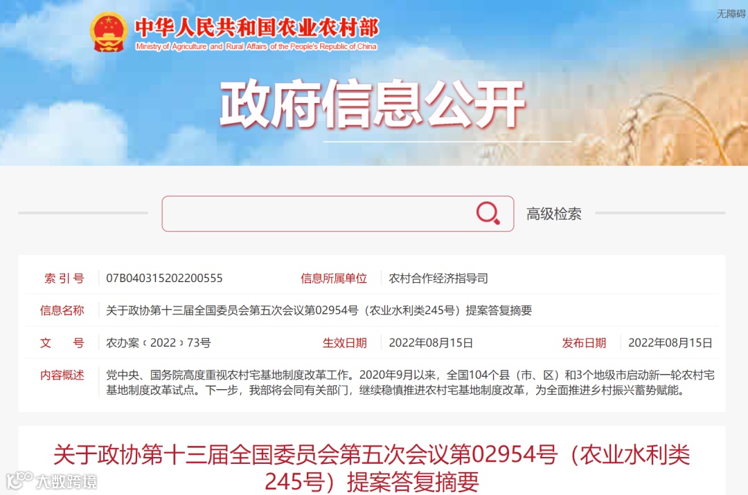 党中央、国务院高度重视农村宅基地制度改革工作。2020年6月,中央全面深化改革委员会第十四次会议审议通过《深化农村宅基地制度改革试点方案》(以下简称《方案》)。2020年9月以来,全国104个县(市、区)和3个地级市启动新一轮农村宅基地制度改革试点。