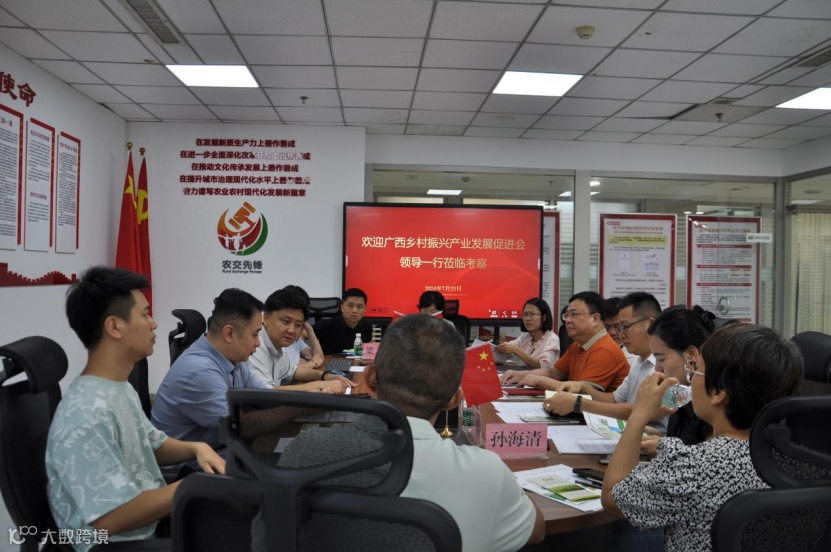 2024年7月23日,广西乡村振兴产业发展促进会会长闵雷、南宁市农村产权流转交易中心副总经理黄日明、广西铜州控股有限公司董事、副总经理李景汉等一行10人组成的考察组到访天津农村产权交易所,就农村产权交易市场建设工作经验进行考察交流。天津农交所相关负责人员与考察组座谈交流。