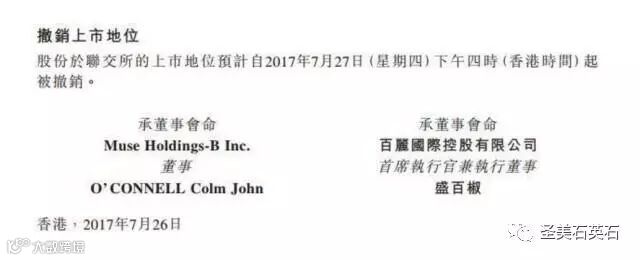 今年7月,百丽私有化方案获得通过。按照百丽国际公布的退市时间表,公司股份于港交所的上市地位将会在2017年7月27日下午四时起被撤销。
