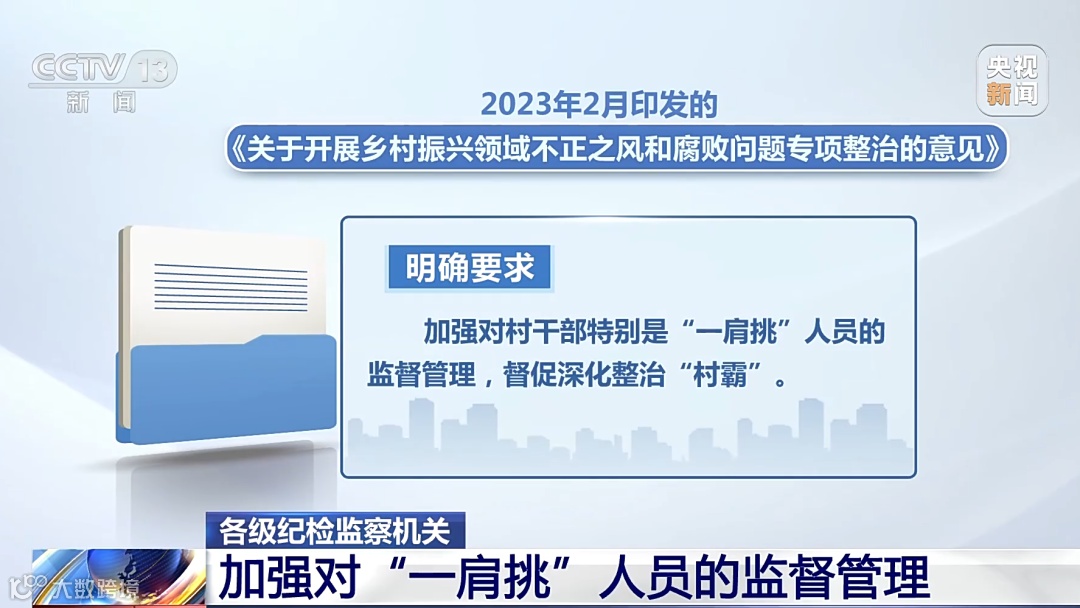 加强对村干部特别是“一肩挑”人员的监督管理,督促深化整治“村霸”。