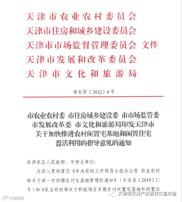 导读:《天津市关于加快推进农村闲置宅基地和闲置住宅盘活利用的指导意见》(津农委〔2022〕4号)结合本村实际,村集