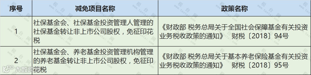 主要是对社保基金一些合同免征印花税。