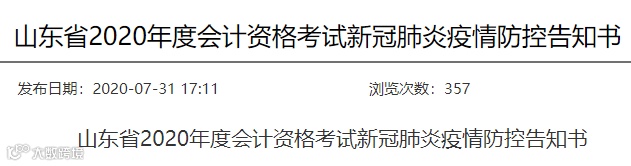 7月31日,上海市财政局发布《2020年会计专业技术考试上海考区考生疫情防控告知书》: