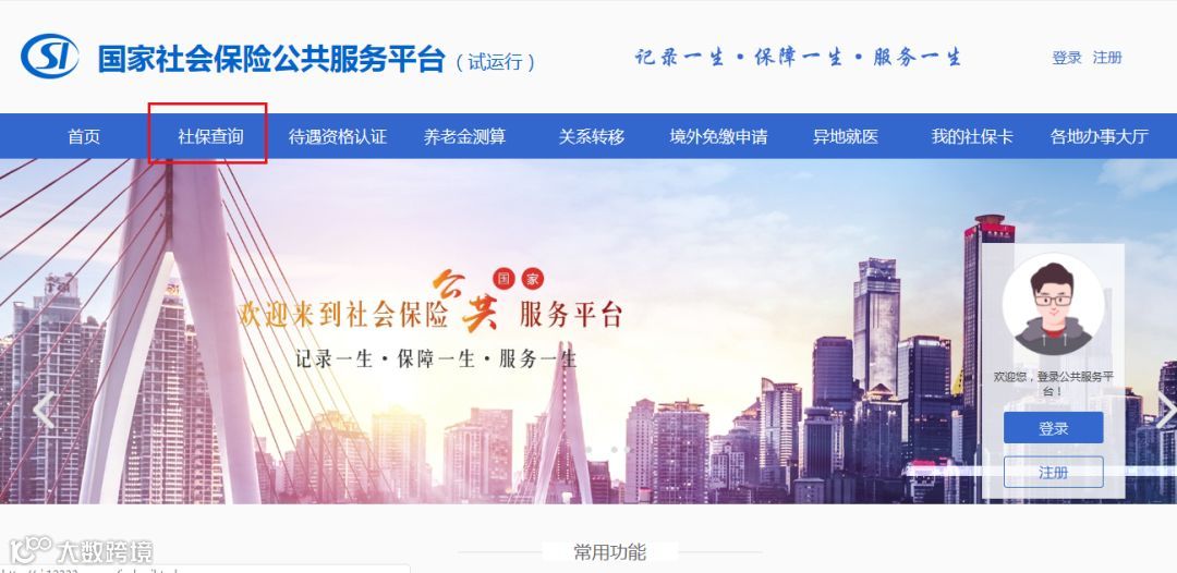 公共服务平台功能很强大,能提供全国性、跨地区的社保公共服务。目前可以进行社保查询、待遇资格认证、养老金测算、社保转移查询、境外免缴申请、异地就医查询、社保卡查询、各地社保网上办事大厅导航等。