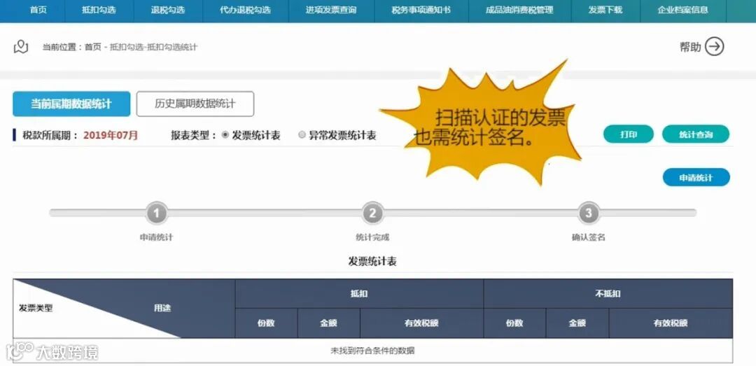 所属期内申请统计和确认签名后允许多次撤销和重新申请/确认,撤销确认操作仅可在未申报或成功撤销申报的前提下进行。申请统计或确认后,发票勾选状态被锁定,需要撤销统计进行抵扣/不抵扣操作。