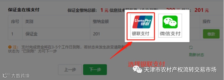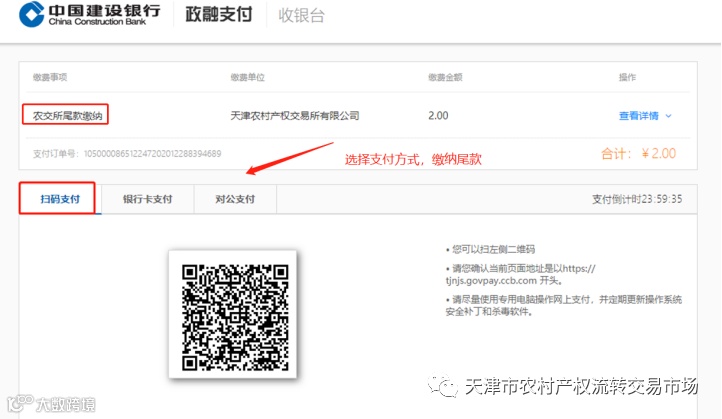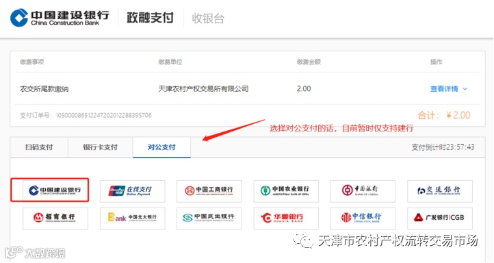 重要通知:参与天津农村产权交易所竞价项目的意向受让方,交纳保证金除原有的手机银行转账、网上银行转账、银行柜面、建行裕农通四种方式外,针对建行用户新增线上支付方式。