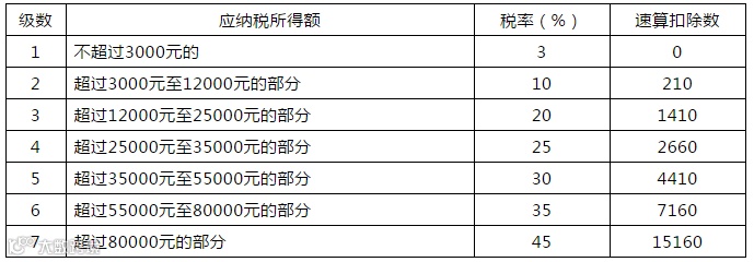 2.非居民个人的工资、薪金所得,以每月收入额减除费用五千元后的余额为应纳税所得额;劳务报酬所得、稿酬所得、特许权使用费所得,以每次收入额为应纳税所得额。依照《个人所得税税率表一(综合所得适用)》按月换算后(详见个人所得税税率表四)计算应纳税额。