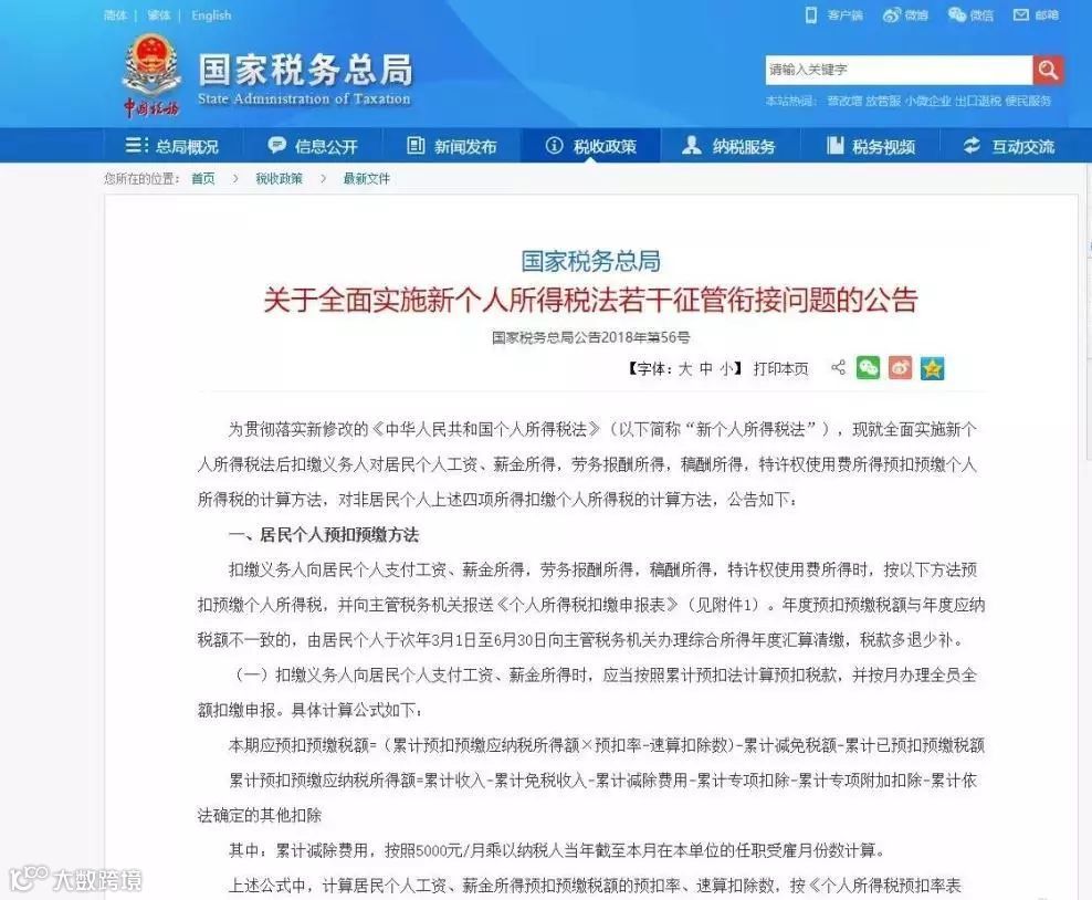 2019年1月1日执行的新个税法已经全面实施,其中,公告明确,居民个人的工资、薪金所得个人所得税,日常采取累计预扣法进行预扣预缴;劳务报酬所得、稿酬所得、特许权使用费所得个人所得税,采取基本平移现行规定的做法预扣预缴。
