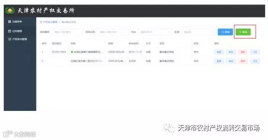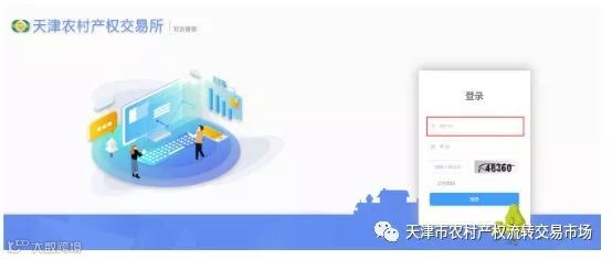 点击首页蓝色按钮“天津市农村产权流转交易信息管理系统”进入后台