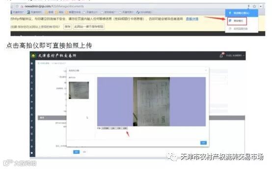 将360浏览器调整为兼容模式,点击高拍仪即可直接拍照上传