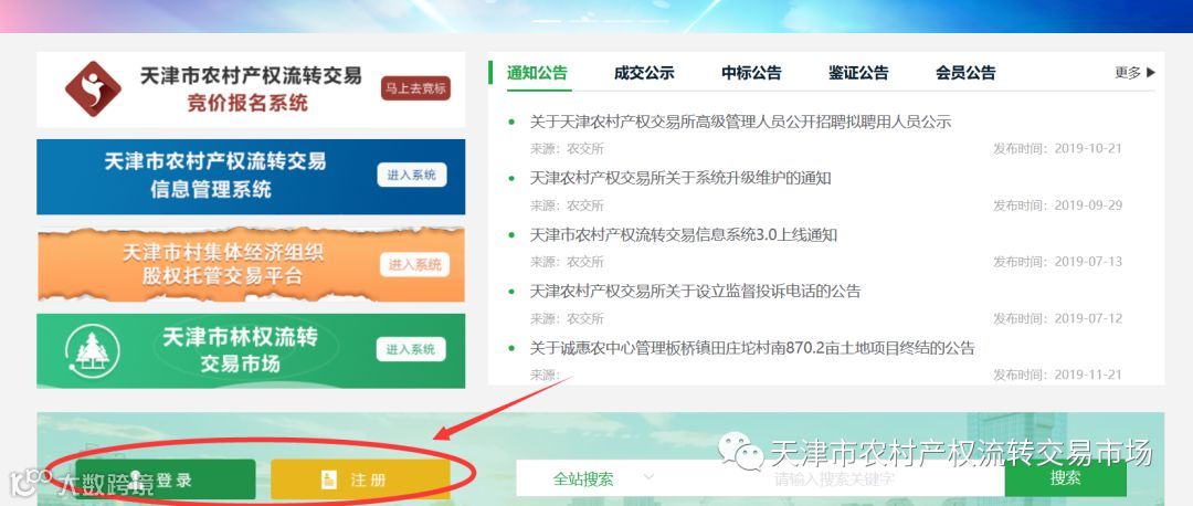 第一步>>>>登录天津农村产权交易所官网(www.tjnjs.com)