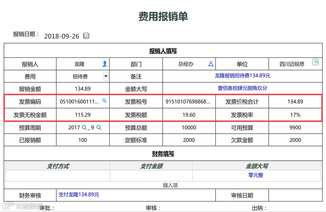 发票云端自动验真、验重,并将发票中的发票编码,税号,价税合计,税额,税率,无税金额带入单据内,一键发起报销单据!