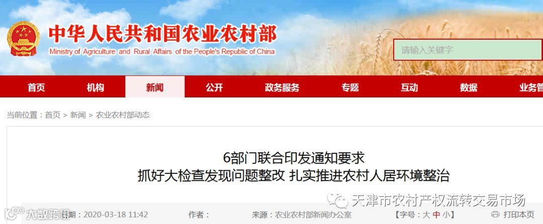 【行业动态】6部门联合印发通知要求 抓好大检查发现问题整改 扎实推进农村人居环境整治