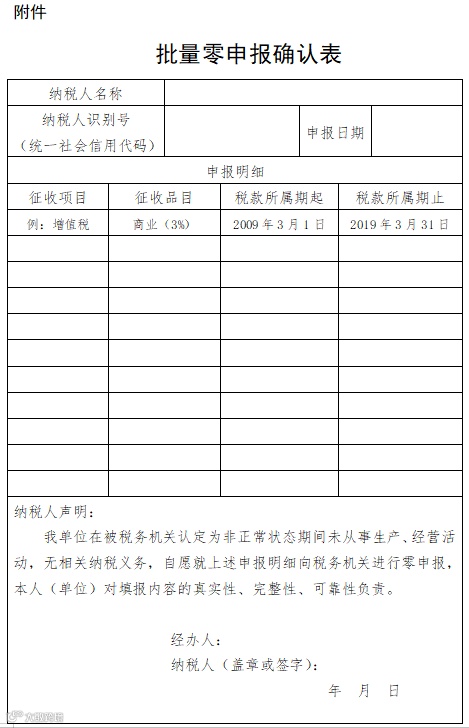 附件:批量零申报确认表