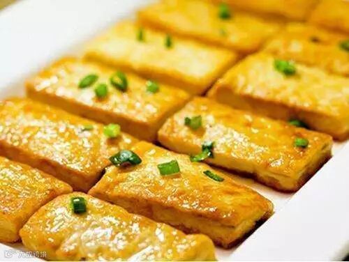 3.热锅热油,将豆腐煎至两面金黄,倒入调好的料汁,翻炒均匀,撒入葱花即可。
