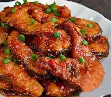 材料:鱼、料酒、葱白、葱花、淀粉、姜片、泡椒、蒜末、番茄酱、酱油