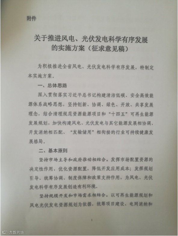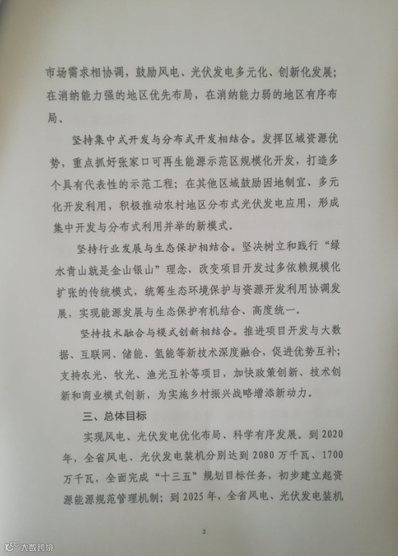 近日,河北省发改委下发关于征求《关于推进风电、光伏发电科学有序发展的实施方案(征求意见稿)》意见的函,指出,到2020年河北省风电、光伏发电装机要全面完成“十三五”规划目标任务,其中风电装机达到2080万千瓦,光伏装机达到1700万千瓦;到2025年,河北省风电、光伏发电装机分别达到2600万千瓦、2000万千瓦以上。