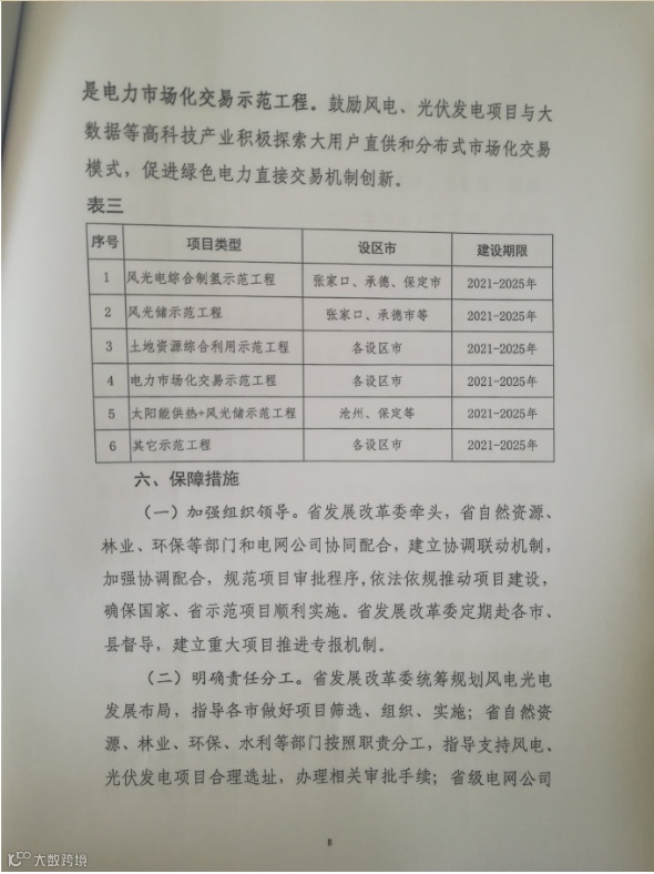 二、加快推进电力就地消纳。加快推进风电、光伏发电项目与清洁供暖、电解制氢、大数据中心、海水淡化等项目深度融合,全方位提升工业、农业、建筑、交通等领域消纳风电、光伏发电能力,建立健全风电、光伏发电消纳保障机制,促进实现京津冀一体化消纳。