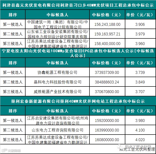 宁夏电投太阳山光伏电站100MWp复合项目EPC总承包中标候选人公示[中标候选人公示]
