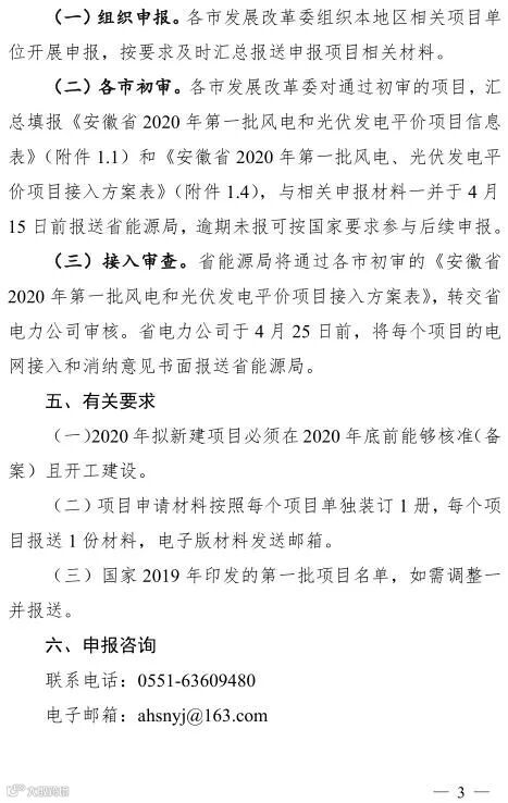 4月1日,安徽省发改委发布《安徽省能源局关于做好2020年风电和光伏发电项目建设工作的通知》,并于4月25日前报送。