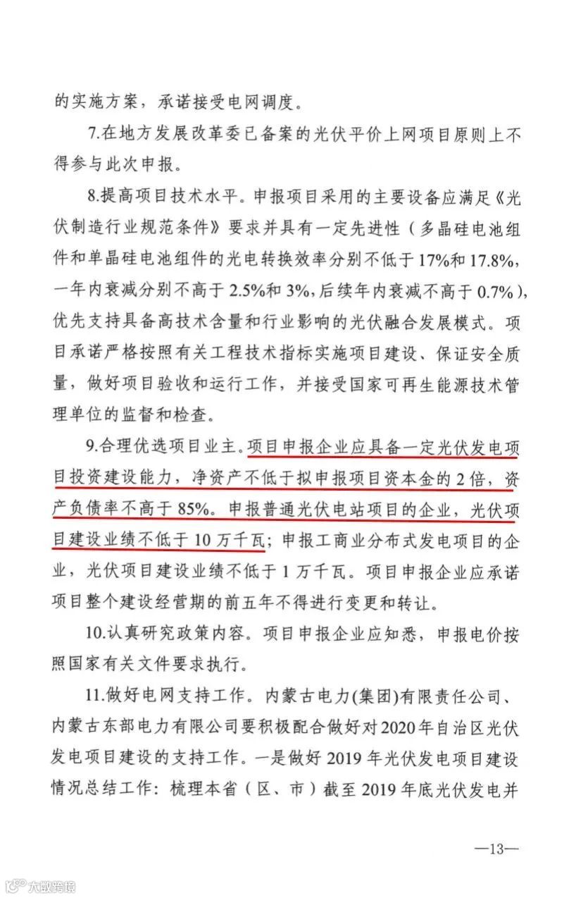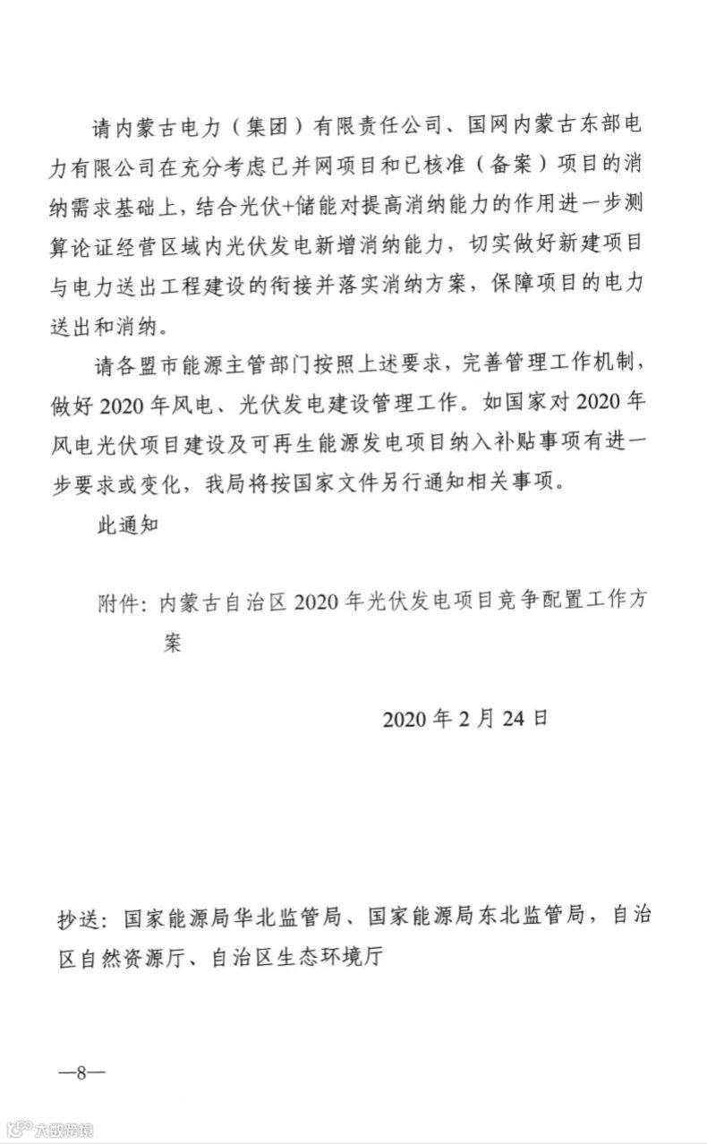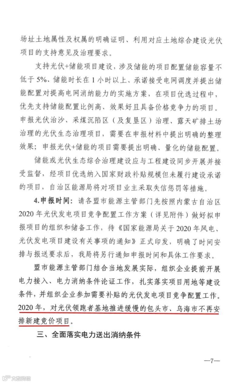 近日,内蒙古自治区能源局下发关于征求《2020年风电、光伏发电项目建设有关事项的通知(征求意见稿)》意见的函,提出:
