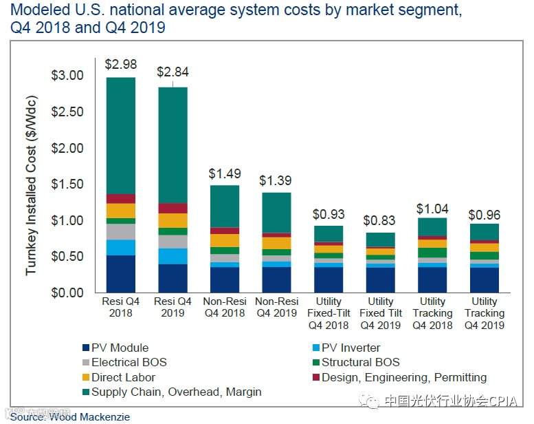 由于对单晶PERC组件的需求增加,从2019年年度回顾报告开始,我们将开始报告除住宅以外的非住宅和公用事业市场的混合组件价格。这代表了多晶组件和单晶PERC组件的加权平均值,而不是仅针对多晶组件的定价。由于2019年第四季度是具有这些新混合系统价格的第一季度,因此不适用于将2019年第四季度系统价格与非住宅和公用事业的前几个季度进行比较。单晶PERC组件比多晶组件价格更高,因此,新的混合组件价格方法将产生更高的系统价格。