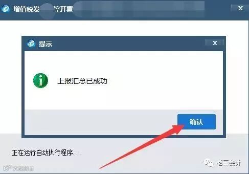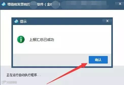 2、增值税发票开票软件会自动提示,上报汇总已成功,点击确认,如下图: