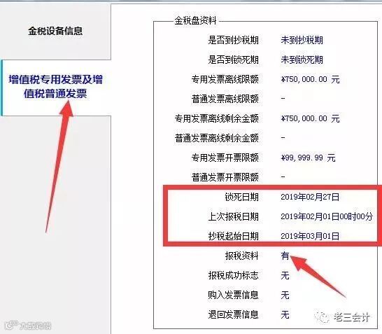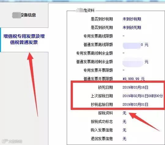 5、点击增值税专用发票及增值税普通发票,显示锁死日期是2019年3月16号,报税资料显示无,所以已经完成清卡的工作。