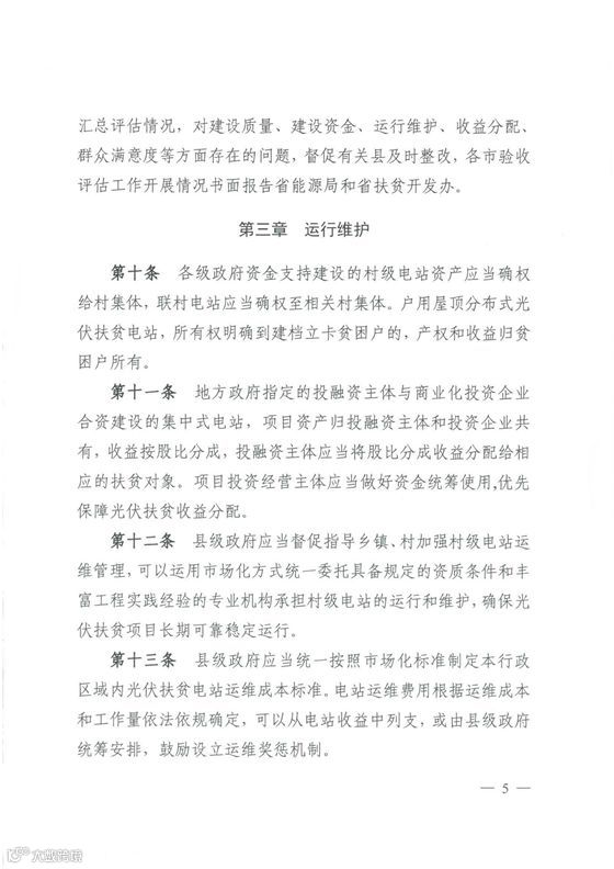值得注意的是,《办法》第四条中明确提出,资金筹措包括财政资金、帮扶资金、和捐赠资金,第五条中则明确表明,村级电站由各级政府出资建设,不得负债建设或使用银行贷款,企业不得入股。第六条中明确指出:不得以企业垫付等方式完成政府出资。
