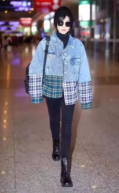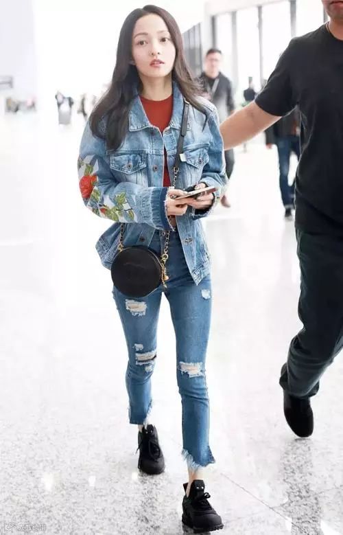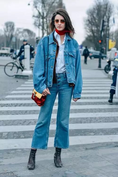 常常有小个子说牛仔外套驾驭不了,不妨试试短款的长度,搭配高腰裤反正身边这样穿的小个子妹子比例看着都不错~