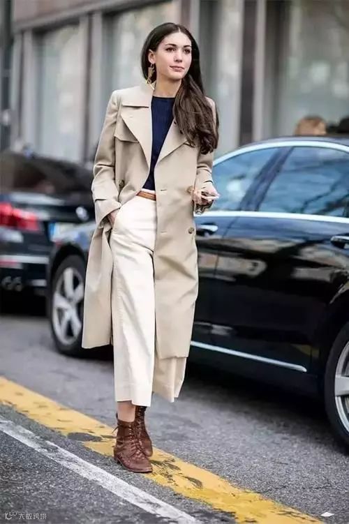 小腿粗的妹子,风衣+阔腿裤搭配短靴或者高跟鞋在秋季穿搭刚刚好。